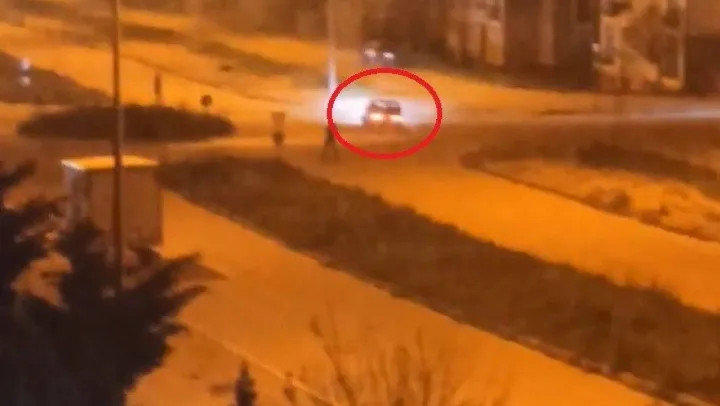 Sürücünün kavşakta drift atma anları kameraya yansıdı.