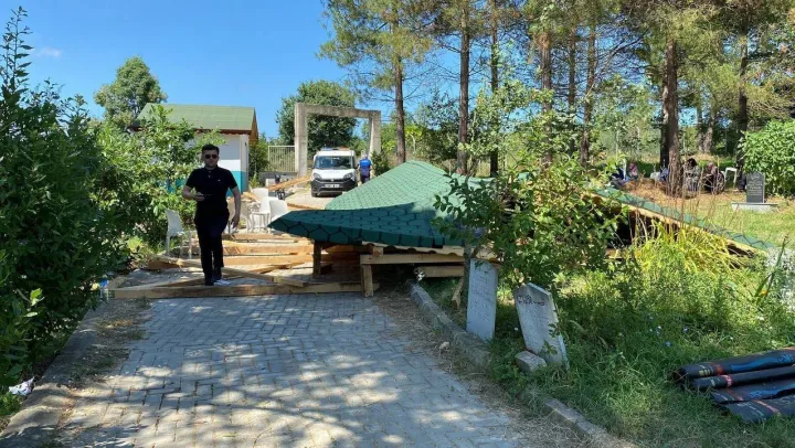 KOCAELİ (İHA) – Kocaeli'nin Kandıra ilçesinde, mezarlıkta dua okuyan cenaze yakınlarının üzerine sundurma çöktü. Olayda üç kişi hafif şekilde yaralandı.