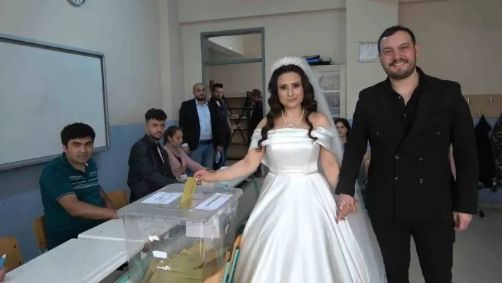 Türkiye, 13. Cumhurbaşkanını seçmek için sandığa giderken, Bursa'da da binlerce vatandaş sandığa gitti. O vatandaşlardan Ulaş Enis ve Sema Kızıldere çifti de nikahları kıyıldıktan sonra düğün eğlencelerini yarıda kesip, oy kullanmak için Şehit Hasan Hüseyin Daşdemir Orta Okulu'na geldi. Vatandaşların şaşkınlık yaşadığı anlar yerini alkışlara bırakırken, gelin ve damat yarıda bıraktığı eğlencelerini tamamlamak için tekrar düğün aracına bindi. Renkli anlar ise kameralara yansıdı.