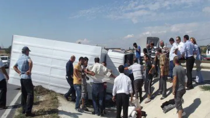 sürücüsünün direksiyon hakimiyetini kaybetmesi sonucu önce sağ bariyerlere vurup oradan da yolun sol tarafında bulunan su kanalına girip ters döndü. Arkadan gelen sürücülerin dikkati sayesinde zincirleme bir kazanın eşiğinden dönüldü.