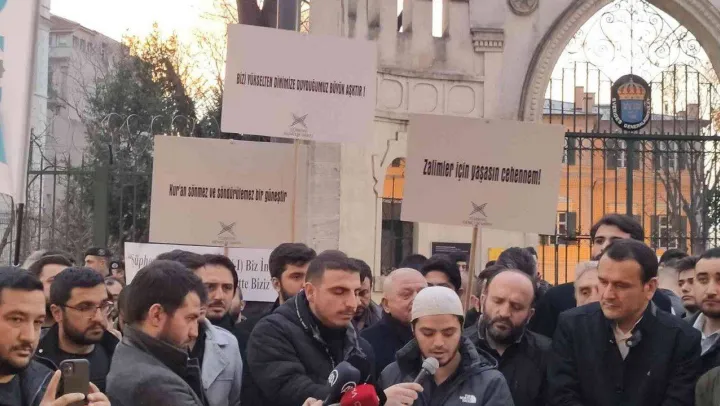 TÜGVA üyesi bir grup, İsveç'in başkenti Stockholm'de Kur'an-ı Kerim'in yakılmasını İstiklal Caddesi'nde bulunan İsveç Konsolosluğu önünde protesto etti. Kur'an-ı Kerim okunmasının ardından AK Parti Gençlik Kolları Başkanı Eyyüp Kadir İnan, yaptığı açıklamada, 'Bizler gibi 81 ilimizde diğer kardeşlerimiz de camilere akın etti. Mukaddes kitabımıza seccadelerimizle birlikte camilerimizde hatimler ve dualar yaptık. Teröristlerin ikinci vatanı olan İsveç'te aşırı sağcı Rasmus Paludan, yüce kitabımız Kur'an-ı Kerim'i yaktı. Üstelik bu aşağılıkça saldırıyı İsveçli gazeteci ve İsveç hükümetinin yardımıyla İsveç polisinin önünde gerçekleştirdi. Yetmedi, bu aşağılık saldırının hemen ardından terör örgütü, Türkiye ve Cumhurbaşkanımız Recep Tayyip Erdoğan'a karşı propaganda eylemi gerçekleştirilmesine de müsaade edildi. İsveç makamı bu rezaleti düşünce ve ifade özgürlüğü olarak nitelendirmiştir. Bu yaşananlar şüphesiz nefret suçu ve ırkçılıktır. İslam'a sövmekten başka fikri olmayanlar fikrin değil İslam'a sövmenin hürriyetini istiyorlar. İstedikleri kadar zorlasınlar, istedikleri kadar taşkınlık ve azgınlık yapsınlar. Onların bu şarlatanlıkları ve tacizleri karşısında susan, sineye çeken Türkiye, artık yoktur' dedi.