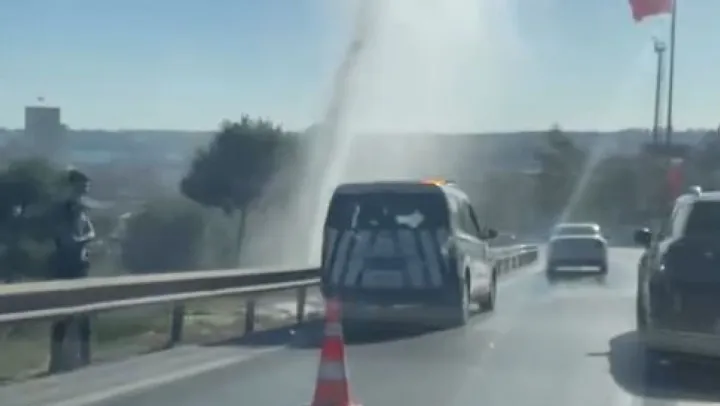 İstanbul Büyükçekmece'de E-5 karayolu kenarında su borusu patladı. Sular metrelerce yukarı çıkarken, trafikte aksamalar yaşandı.