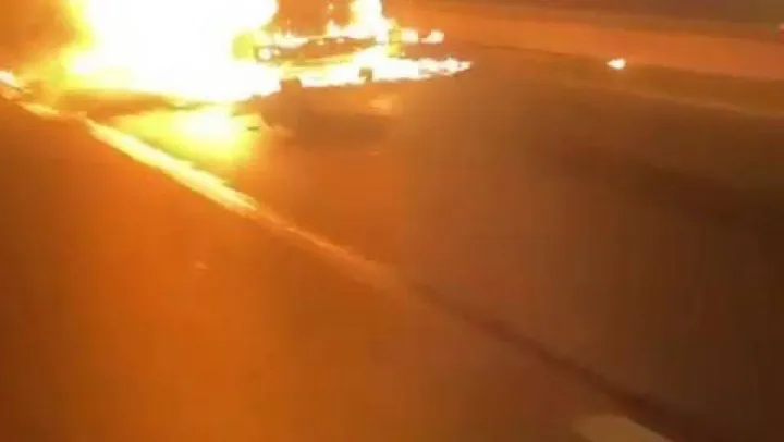 E-5'te alev topuna dönen araç geceyi aydınlattı