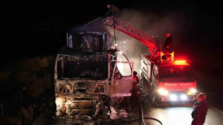 Edirne'de domates yüklü tır yanarak hurdaya döndü