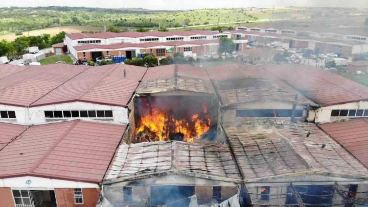 Edirne'de mobilya deposundaki yangın havadan görüntülendi
