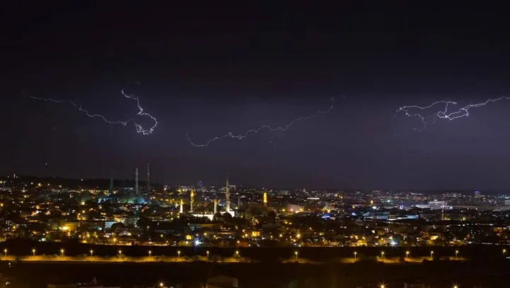 Edirne'de etkili olan gök gürültülü sağanak yağış ile birlikte çakan şimşekler geceyi aydınlattı.