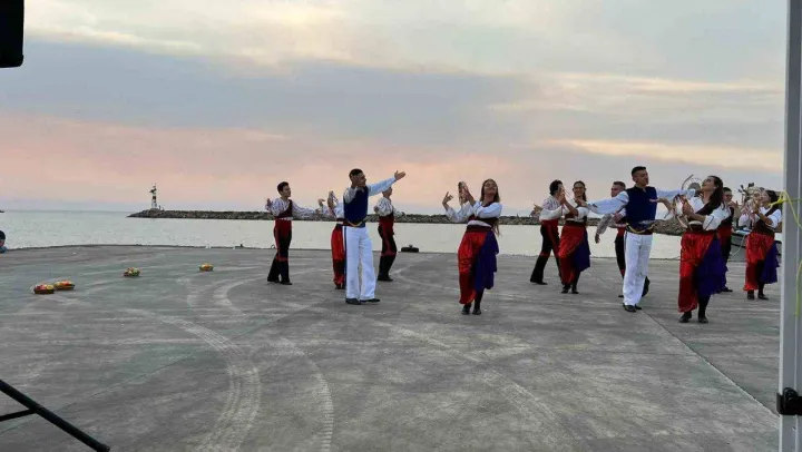 Enez Av ve Balık Festivali'nde 7 ülkeden gelen katılımcılar, dans görüntüleriyle limanı şenlik alanına çevirdi. Bosna-Hersek, Yunanistan, Ukrayna, KKTC, Bulgaristan, Moldova ve Romanya'dan gelen ekipler, ülkelerine ait folklor oyunlarını gösterdi.
