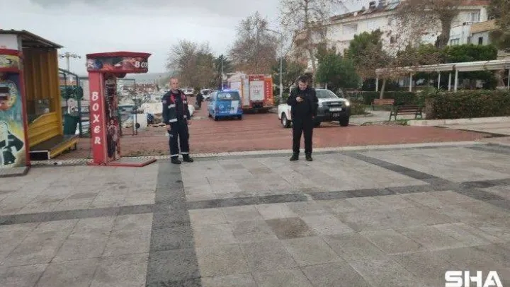 Edremit'te fırtına işyerlerinin tabelalarını denize uçurdu