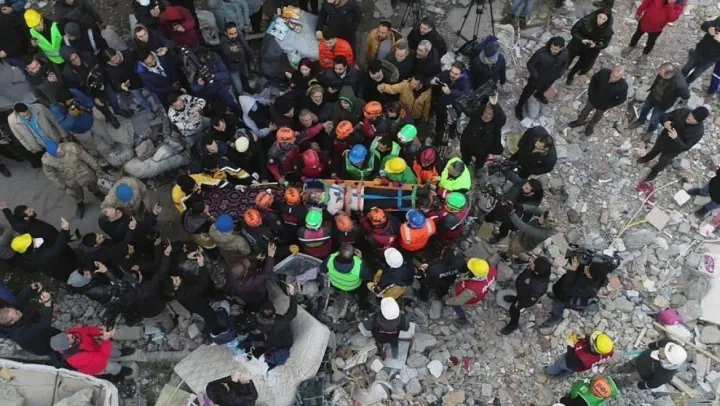 Kahramanmaraş merkezli depremlerden en çok etkilenen illerden biri olan Hatay'da Polis Memuru Hacı Murat ve Raziye Kılınç çifti 107 saatin sonunda enkaz altından sağ çıkarıldı.