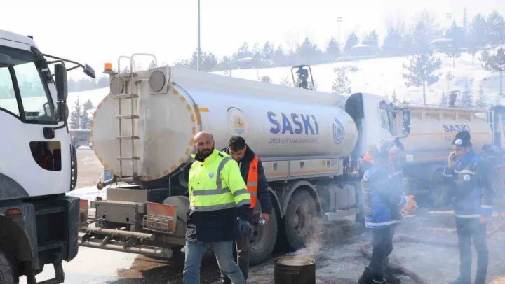 Yapılan çalışmalar hakkında bilgi vermeye devam eden Bahattin Yanık, 'Bir taraftan da vidanjörlerle birlikte kanalizasyon temizlik çalışması yapıyoruz. Çadır kentlerin olduğu tuvaletlerin kullanım suyunu temin etmek için nehirden iki ayrı noktaya dalgıç pompalar ve klorlama tesisleri ile birlikte seyyar boru hatları çekip kullanıma sunduk. Bizim buradaki çalışmalarımızı olumsuz etkileyen tek şey havanın soğuk olması. Sıcaklık geceleri eksi 18 dereceye kadar düşüyor. Bundan dolayı da içme suyu tankerlerimizin ve vidanjörlerimizin pompaları ile vanaları donuyor. Onların çözülmesi noktasında da uğraş veriyoruz. Zaman kaybımıza neden oluyor ama hızlı bir şekilde aşıp hizmete devam ediyoruz' şeklinde konuştu.
