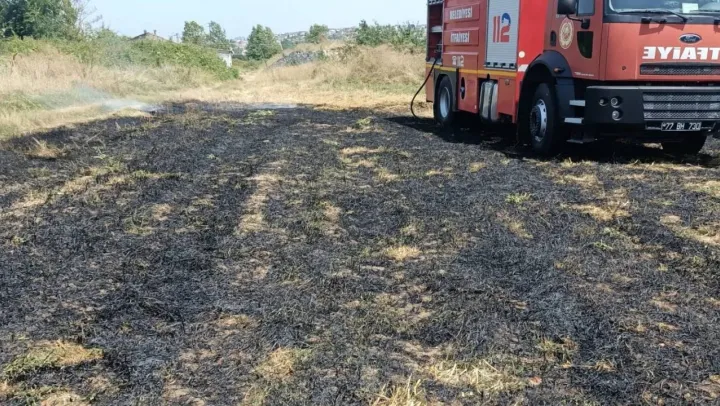 Yalova'da elektrik tellerine güvercinin çarpması sonucu anız yangını meydana geldi.