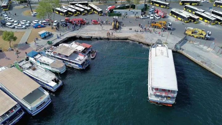 Eminönü'nde otobüsü denizden çıkarma çalışmaları havadan görüntülendi