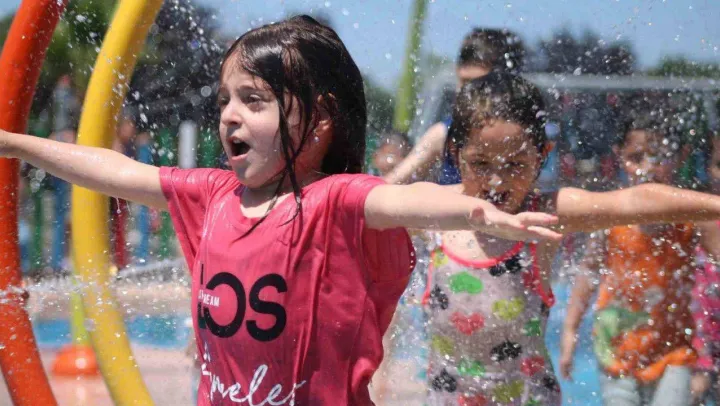 Sukaypark bünyesindeki 'Su Oyunları Parkı'nda çocuklar hem eğlendi hem de serinledi. 38 derece sıcaklıkta bekleyen aileler ise, koşuşturan çocuklarını imrenerek izledi.
