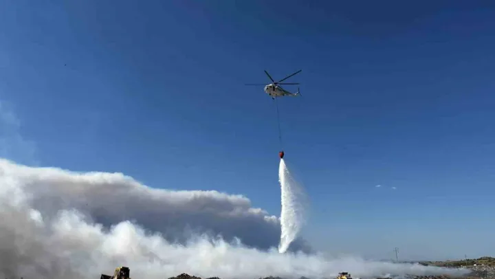 Enez'in eski çöplüğünde çıkan yangına 3 uçak ve 2 helikopterle müdahale edildi