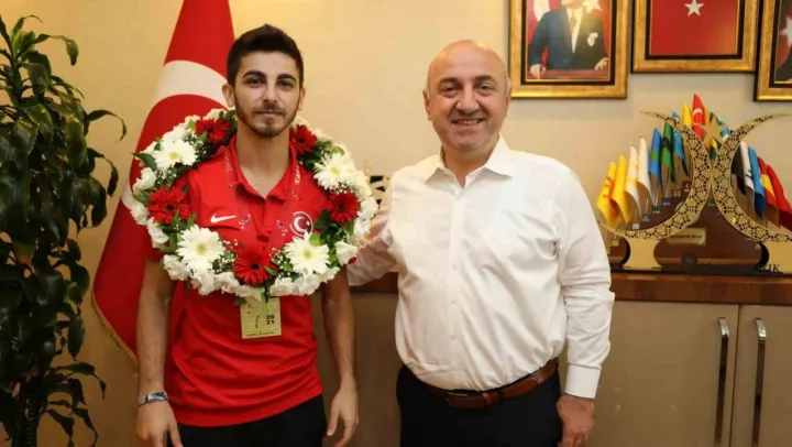 Darıca Belediyesi Eğitim ve Spor Kulübü'nün başarılı milli sporcusu Eray Şamdan, Dünya Şampiyonasında üçüncü olarak bronz madalya kazandı. Darıca Belediye Başkanı Muzaffer Bıyık, Cumhuriyetin 100. yılında gelen anlamlı madalya sonrası genç sporcuyu tebrik etti.