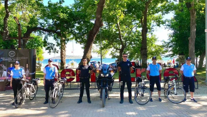 Erdek İlçe Emniyet Müdürlüğüne bağlı 'Martı' polis timleri, plaj ve sahillerin güvenlik ve asayişinin sağlanması için pedal çeviriyor.