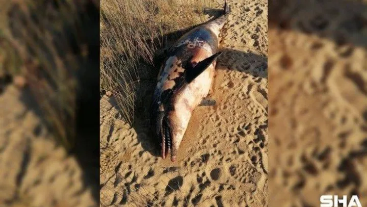 Balıkesir'in Erdek ilçesinde tüfekle öldürülmüş bir yunus balığı karaya vurdu.