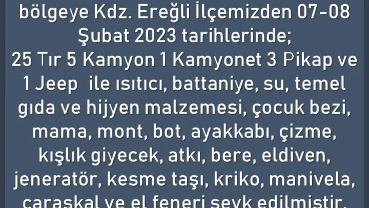Kdz. Ereğli kaymakamlığı bünyesinde yapılan yardım kampanyaları deprem bölgelerine ulaştırılmak üzere yola çıktı.