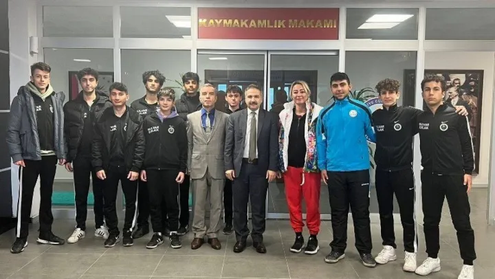 Tekirdağ Genç Erkekler Hentbol Şampiyonası'nda tüm maçlarını kazanarak Tekirdağ il birincisi olan Ergene Anadolu Lisesi Hentbol Takımı'nın sporcu öğrencileri beraberinde okul müdürleri Kamil Duman ve beden eğitimi öğretmenleri Sevilay Öztürk eşliğinde Ergene Kaymakamı Mehmet Emin Taşçı'yı makamında ziyaret ederek başarılarını paylaştı.