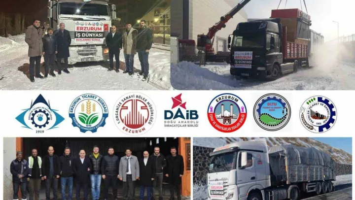 Erzurum Ticaret ve Sanayi Odası (ETSO), Erzurum Ticaret Borsası (ETB) ve 1. Organize Sanayi Bölgesi'nin (1. OSB) öncülüğünde, Pasinler TSO, Oltu TSO, Erzurum Esnaf ve Sanatkarlar Odaları Birliği (ESOB), Doğu Anadolu İhracatçılar Birliği (DAİB), diğer STK'lar, hayırsever iş adamları ve vatandaşlar işbirliğinde yürütülen ayni yardım kampanyasında şimdiye kadar toplanan yardım malzemeleri, tır, kamyon ve kamyonetten oluşan 23 araçla deprem bölgesine ulaştırıldı.