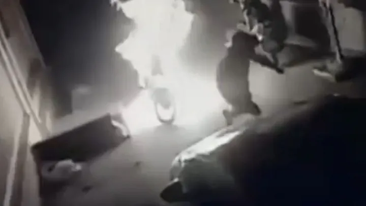 Güvenlik kamerasına yansıyan kundaklama olayında ise apartman önünde park halinde olan motosikletin yanına gelen bir kişi motosikletin üzerine yanıcı bir madde döktükten sonra ateşleyip olay yerinden kaçtığı görülüyor. Sonrasında ise motosiklet alev topuna dönüyor.