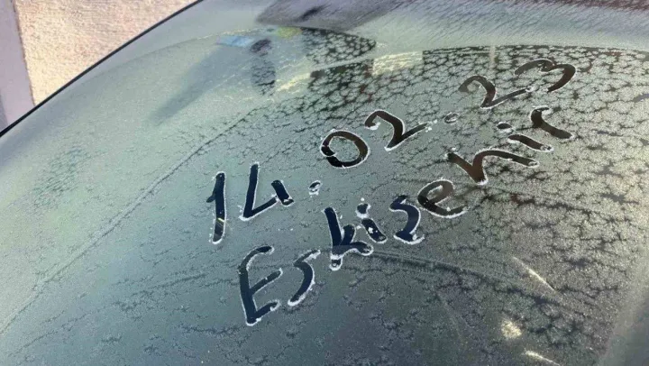 Eskişehir'de uzun zamandır kar yağışı beklenirken, gece hava sıcaklığının sıfırın altına düşmesiyle araç camlarında buz tabakası oluştu.