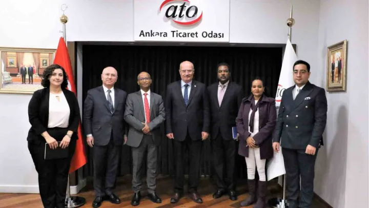 Etiyopya Ankara Büyükelçisi Adem Mohamed Mahmud ile ATO Yönetim Kurulu Başkanı Gürsel Baran'ı makamında ziyaret etti. İkili, Türkiye ile Etiyopya arasındaki ticari ilişkilerin geliştirilmesine ilişkin görüşme yaptı. ATO Yönetim Kurulu Başkanı Gürsel Baran, Türkiye ile Etiyopya arasındaki dış ticaret hacminin 400 milyon doların altında olduğunu belirterek, 'Cumhurbaşkanımız Recep Tayyip Erdoğan'ın Etiyopya'da gerçekleştirdiği resmi ziyaretlerde üzerinde uzlaşmaya varılan, iki ülke arasındaki ticaret hacmini 1 milyar dolar seviyesine çıkarma hedefi için Ankara Ticaret Odası olarak çalışmaya hazırız' dedi.