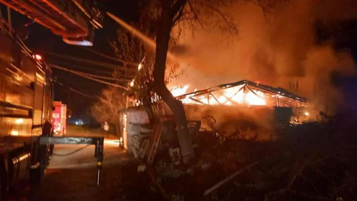 Evde çıkan yangın ahır ve samanlığa sıçrayınca 7 küçükbaş hayvan telef oldu