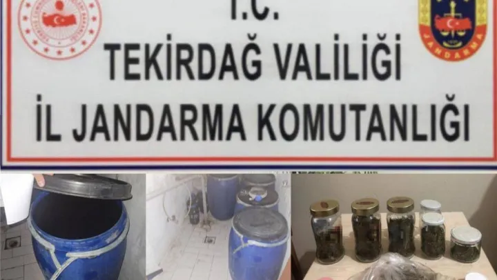Şarköy İlçe Jandarma Komutanlığı ekiplernce Mürefte Mahallesi'nde yaşayan A.K'nin uyuşturucu sattığı bilgisi üzerine operasyon için düğmeye bastı. Zanlının evinde yapılan aramada, 500 litre kaçak içki ve 345 gram esrar bulunarak el konuldu. Konuyla ilgili ev sahibi gözaltına alındı.