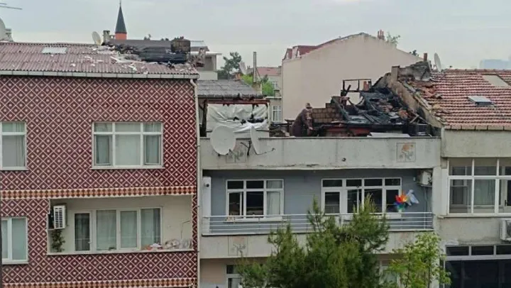 Eyüpsultan'da 2 katlı binanın çatısı alev alev yandı
