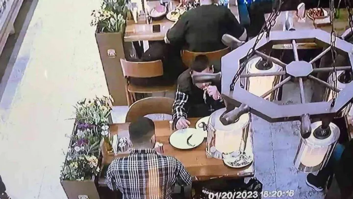 Güvenlik kameralarına yansıyan görüntülerde, 2 kişinin yemeklerini sipariş ettikten sonra masaya oturdukları görülüyor. Yemeğin yanında içeceklerini içen kişiler ketçap ve mayonez de istemekten geri kalmıyor. Yiyemediklerini paket yaptıran kişiler sıra sıra restorandan çıkarak uzaklaşıyor.