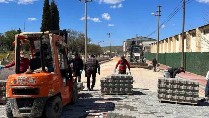 Çanakkale'nin Ezine ilçe Belediyesi alt yapı ve çevre düzenleme yapım işlemlerini sürdürüyor.