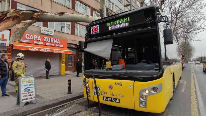 Fatih'te içinde yolcuların bulunduğu İETT Otobüsü, sürücüsünün kontrolünden çıkınca bir ağaca çarparak durdu. Facianın eşiğinden dönülen kazada ölen ya da yaralanan olmazken, otobüs üzerine devrilen ağaç parçası vinç yardımı ile kaldırıldı.