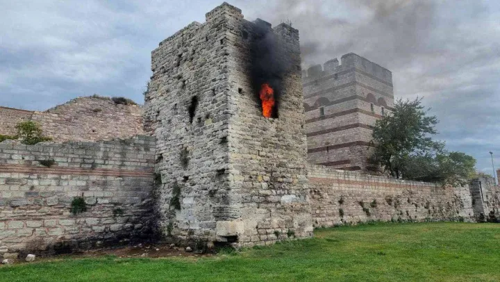 Fatih'te tarihi surlardaki bir kulede yangın çıktı. Alevler itfaiye ekipleri tarafından söndürüldü.