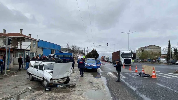 Tekirdağ'ın Ergene ilçesinde meydana gelen feci kazada bir kişi öldü. Kaza anı ise saniye saniye kameralara yansıdı.