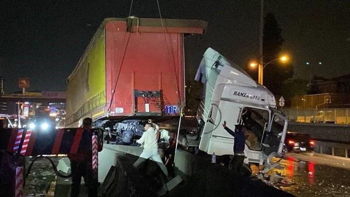 Kocaeli'nin İzmit ilçesi D100 Karayolunda tır sürücüsünün direksiyon hakimiyetini kaybetmesi neticesinde meydana gelen feci kazada şans eseri sürücü burnu bile kanamadan kurtuldu.