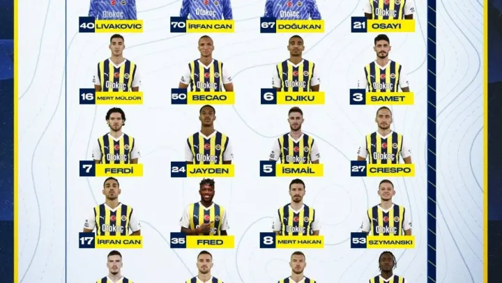 'Dominik Livakovic, İrfan Can Eğribayat, Doğukan Demir, Bright Osayi-Samuel, Mert Müldür, Rodrigo Becao, Alexander Djiku, Samet Akaydin, Ferdi Kadıoğlu, Jayden Oosterwolde, İsmail Yüksek, Miguel Crespo, İrfan Can Kahveci, Fred, Mert Hakan Yandaş, Sebastian Szymanski, Ryan Kent, Dusan Tadic, Edin Dzeko, Michy Batshuayi, Umut Nayir.'