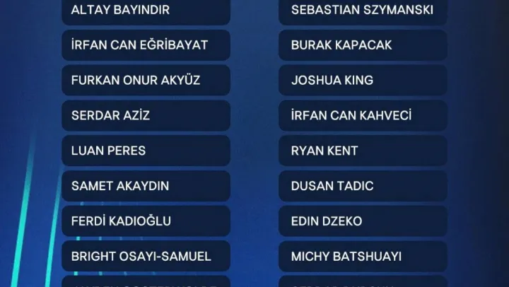 Altay Bayındır, İrfan Can Eğribayat, Furkan Onur Akyüz, Serdar Aziz, Luan Peres, Samet Akaydin, Ferdi Kadıoğlu, Bright Osayi-Samuel, Jayden Oosterwolde, Miguel Crespo, İsmail Yüksek, Mert Hakan Yandaş, Sebastian Szymanski, Burak Kapacak, Joshua King, İrfan Can Kahveci, Ryan Kent, Dusan Tadic, Edin Dzeko, Michy Batshuayi, Serdar Dursun, Efekan Karayazı, Bora Aydınlık.