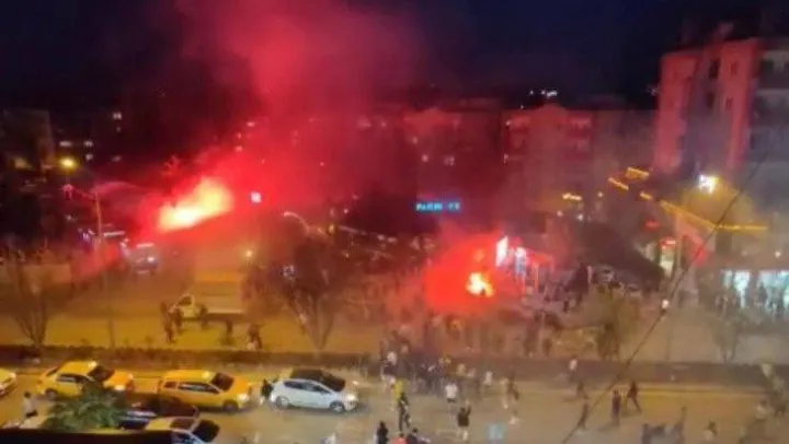 Bursa'da Fenerbahçe-Galatasaray derbisi öncesi iki taraftar grubu birbirine girdi. Gençlerin yoğunlukta olduğu Görükle Mahallesi'nde karşı karşıya gelen taraftar grubu arasındaki sözlü sataşmada meşaleler havada uçuştu.