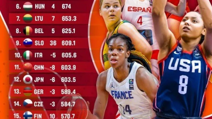 Sıralamada 9'unculuğa gelen Slovenya ise FIBA 17 Yaş Altı Kadınlar Basketbol Dünya Kupası 2022'de oynadığı yedi maçın beşini kazanınca 36 sıra yükseldi ve ilk 10'a girdi.