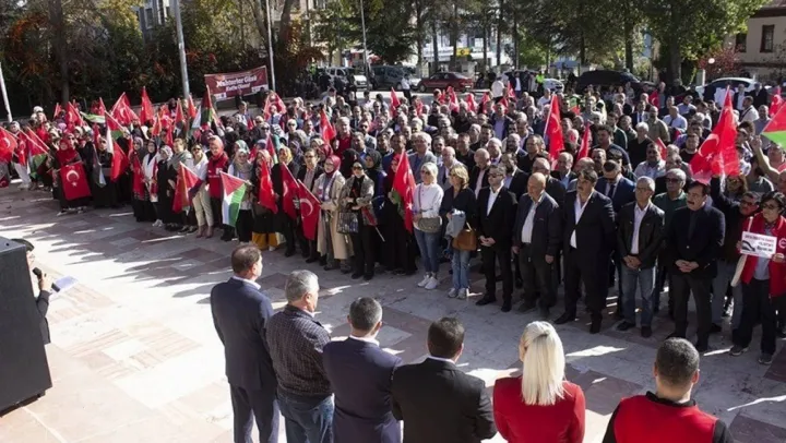 Bilecik'te siyasi partiler ve sivil toplum kuruluşları Filistin için tek yürek oldu.