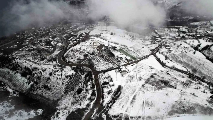 Sakarya'da etkili olan kar yağışı ile birlikte yüksek kesimlerde kartpostallık görüntüler ortaya çıktı. Kar yağışının ardından oluşan ve kendine hayran bırakan manzara havadan görüntülendi.