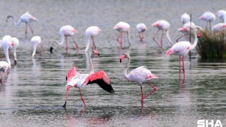Geçtiğimiz yıla göre sayıları 2 katına ulaşan flamingoların, uğruna Osmangazi Köprüsüne eğim verdiren,' kuş oteli' olarak da bilinen Hersek Lagünü'nde yaptığı dansları yurt dışından bile görmeye gelenler var. Uzmanlara göre artan flamingo popülasyonunun sebebi ise Van Gölü havzasındaki kuraklık.