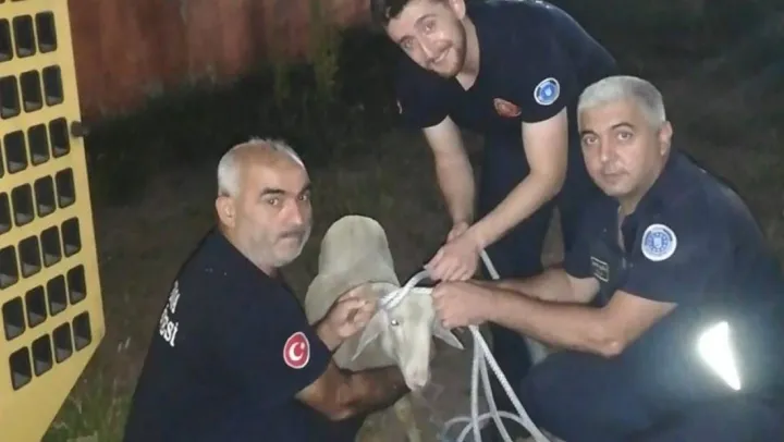 Foseptik çukuruna düşen koyunu itfaiye ekipleri kurtardı
