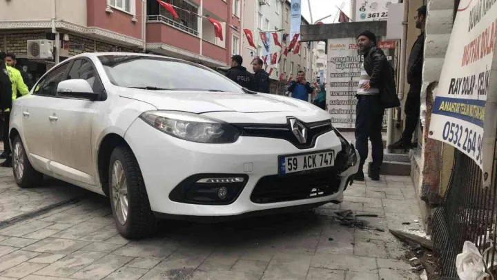 Tekirdağ'ın Muratlı ilçesinde fren yerine gaza basan sürücü 2 kişiyi duvara feci şekilde sıkıştırdı.