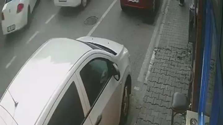 Bursa'nın Mudanya ilçesinde meydana gelen kazada bir otomobil sürücüsü yanlışlıkla fren yerine gaza basınca yol kenarında yürüyen 3 kişiye çarptı. O anlar bir mağazanın güvenlik kamerasına saniye saniye yansıdı.
