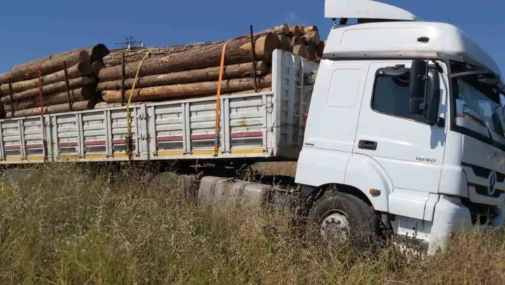 Bursa'nın İznik ilçesinde park halindeki tırın freni boşaldı. Tomruk yüklü tır şans eseri lastiğinin patlamasıyla durdu. O anlar güvenlik kamerasına yansıdı.