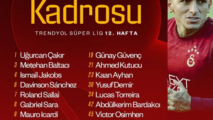 Trendyol Süper Lig'in 12. haftasında Kocaelispor'a konuk olacak Galatasaray'ın kamp kadrosu açıklandı.