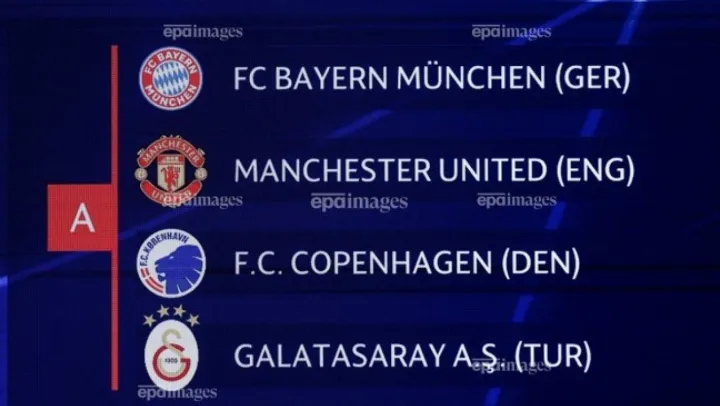 Galatasaray, UEFA Şampiyonlar Ligi'nde A Grubu'nda Bayern Münih, Manchester United ve FC Kopenhag ile eşleşti.