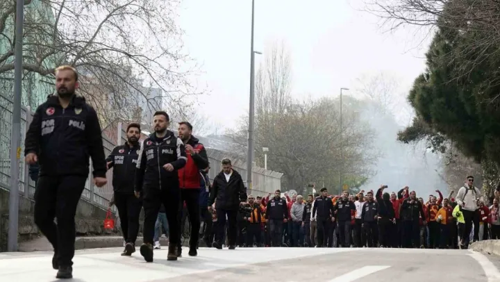 Galatasaraylı taraftarlar, Trendyol Süper Lig'in 29. haftasında oynayacakları Beşiktaş derbisi için Tüpraş Stadyumu'na geldi.